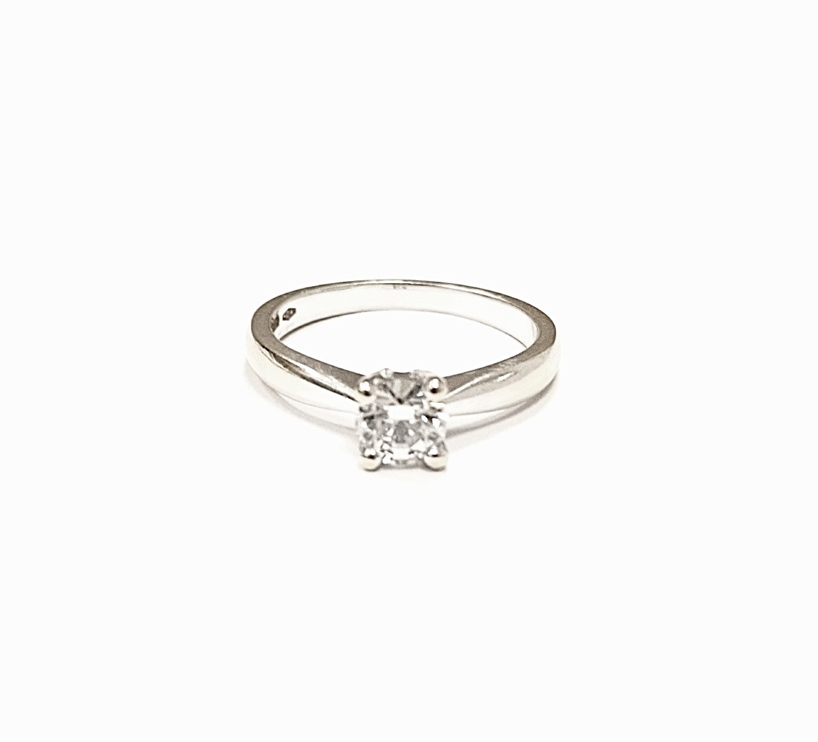 KE03 - SOLITARIO - ANELLO IN ORO BIANCO 18K CON DIAMANTE CT 0,61 - CASTONE A 4 GRIFFE
