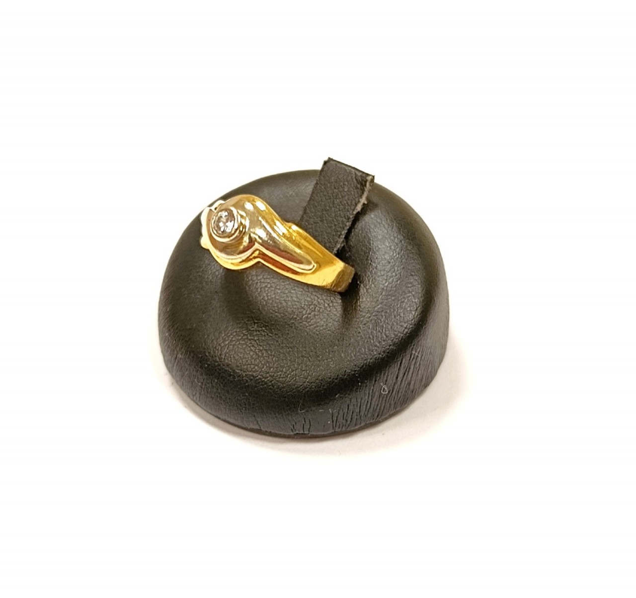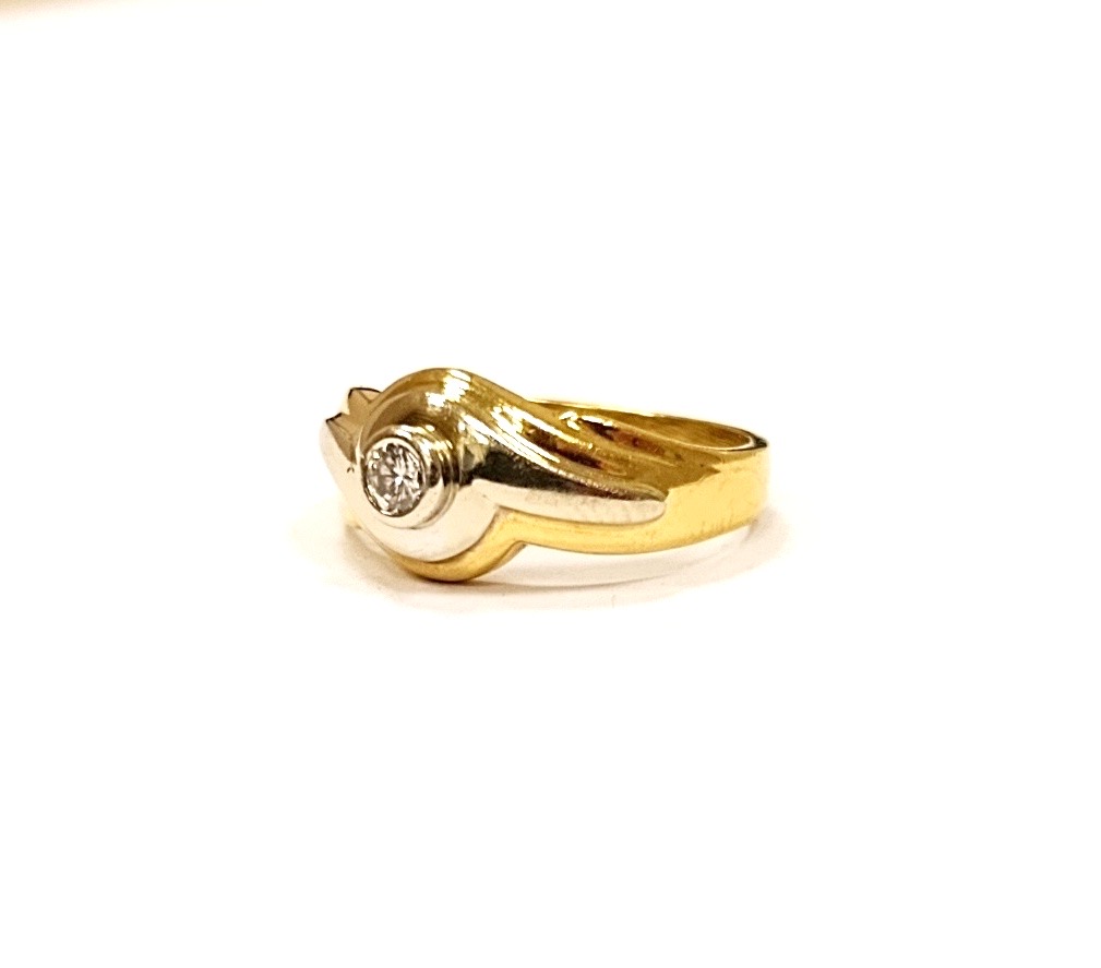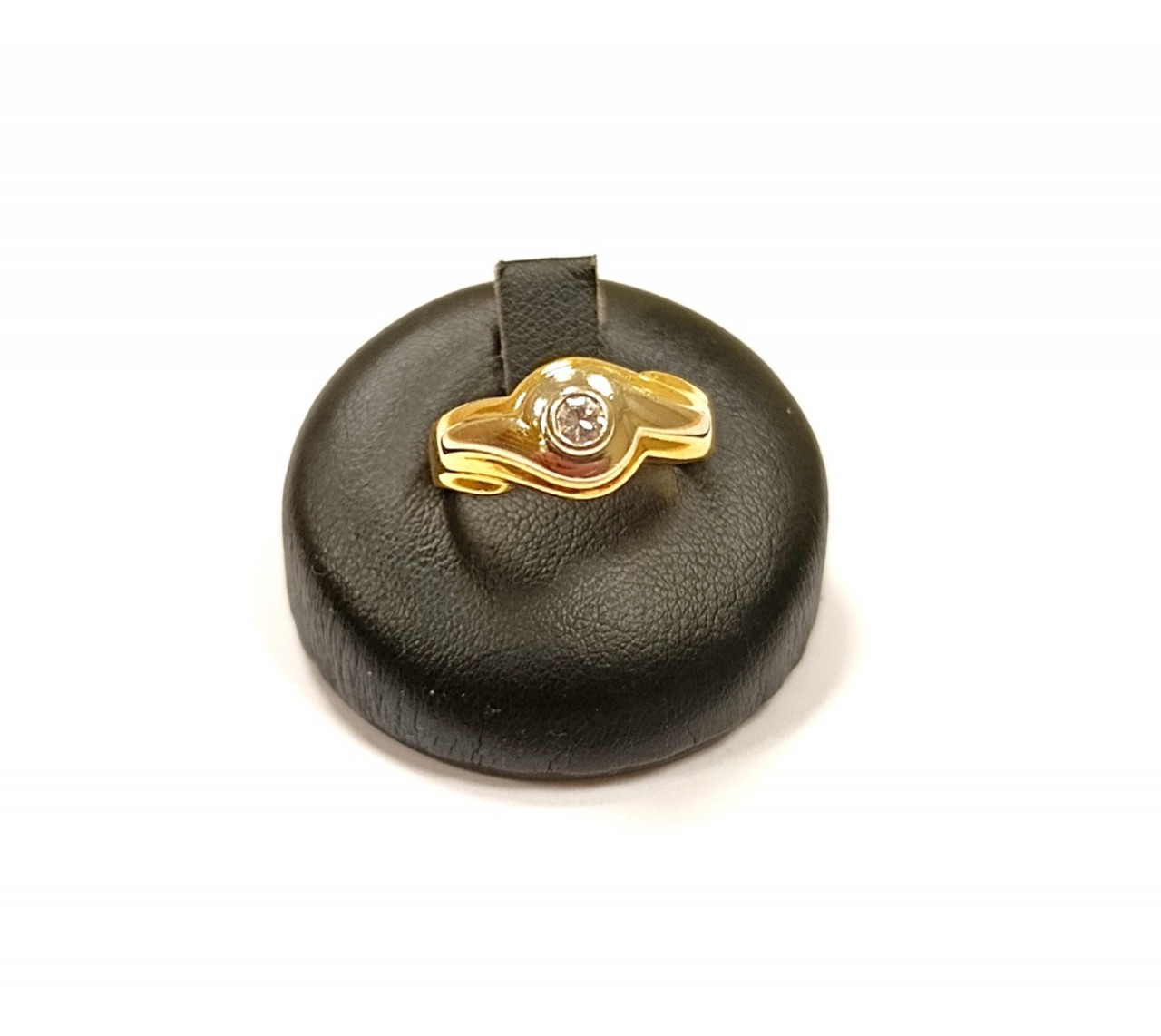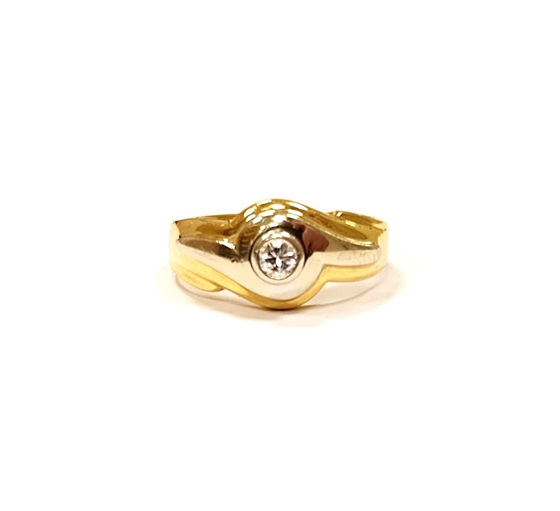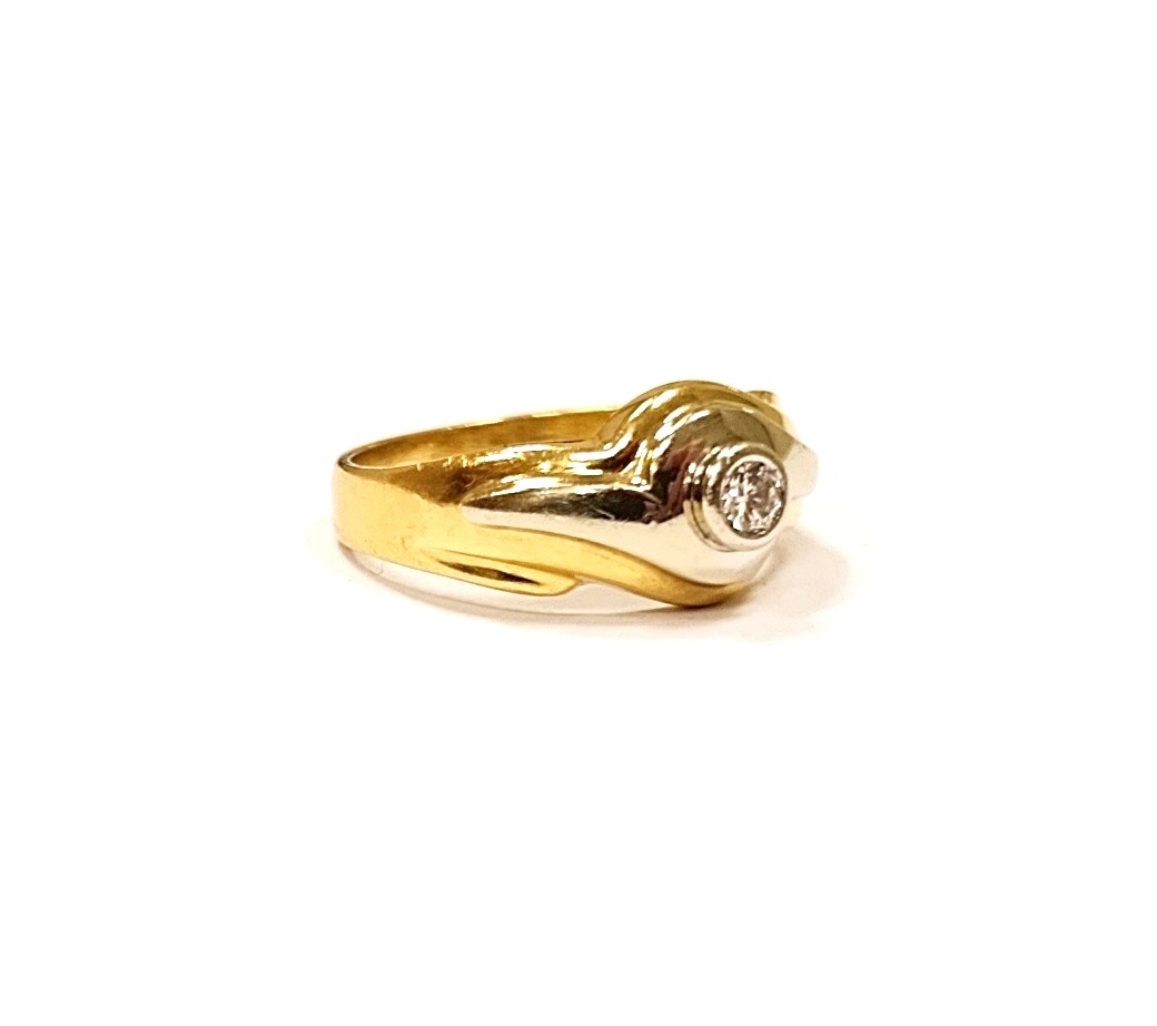 KE03 - SOLITARIO - ANELLO IN ORO GIALLO E BIANCO 18K CON DIAMANTE CT 0,10 CASTONE A CIPOLLA