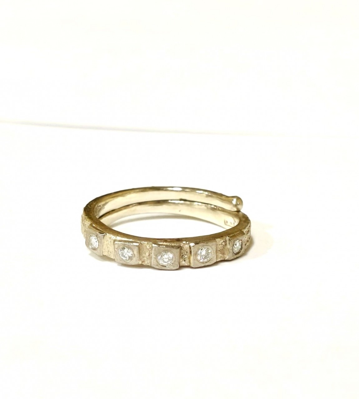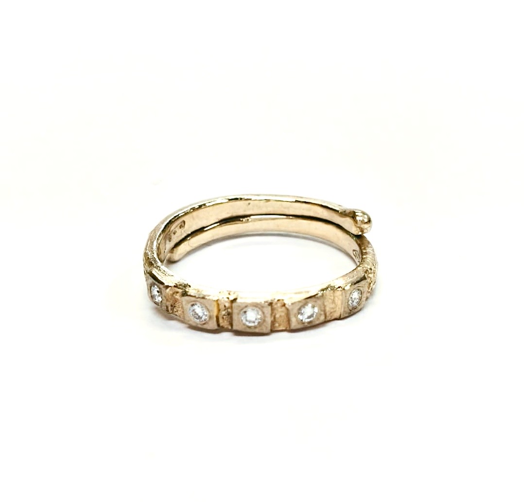KE04 - BORGHESI RIVIERE TRINITY - ANELLO ORO GIALLO E BIANCO 18K CON DIAMANTI CT 0,15 - FUSIONE A CERA PERSA, FINITURA MATERICA E LUCIDA, ECCELLENZA ORAFA VERONESE