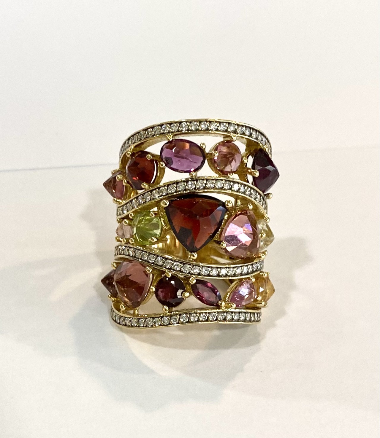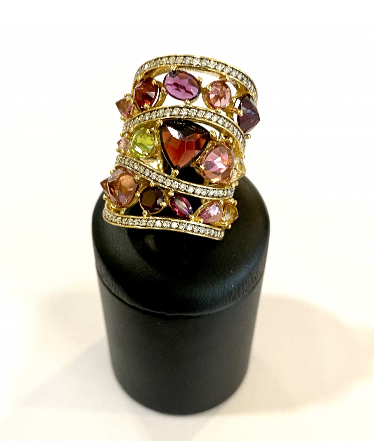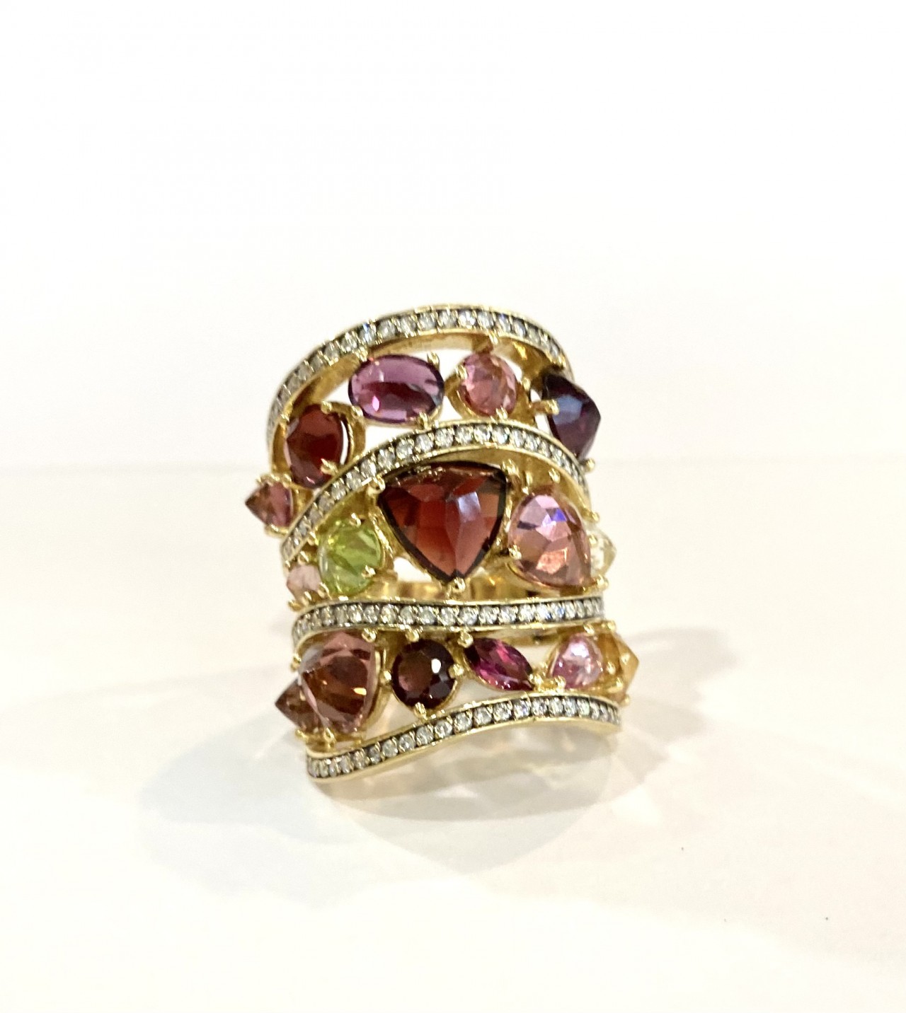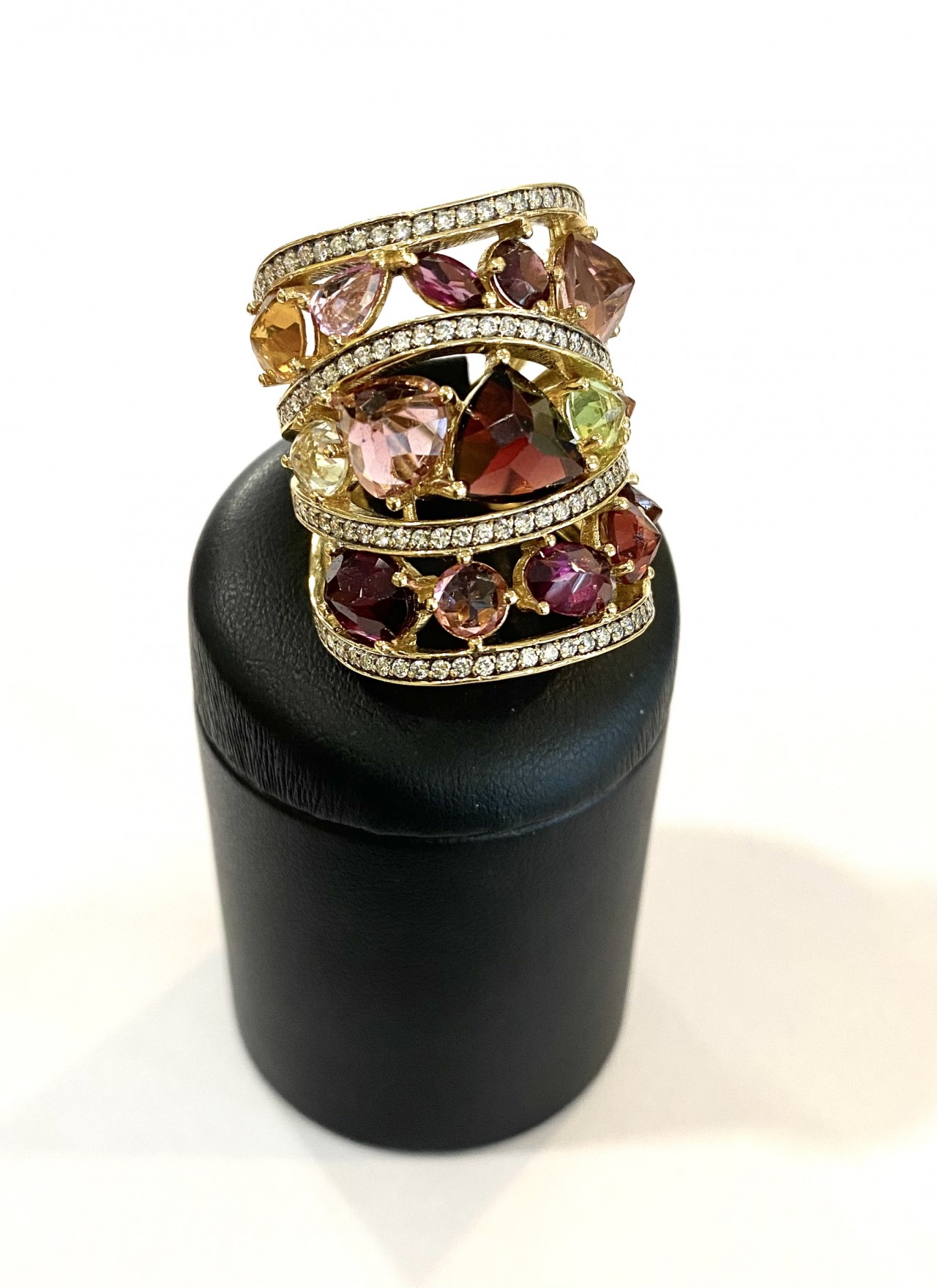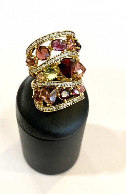 Carati: diamanti ct 1,12Stima Pietre Colore: Gemme naturali multicolor non precisatePeso: gr 19,44Prezzo: € 2.990,00