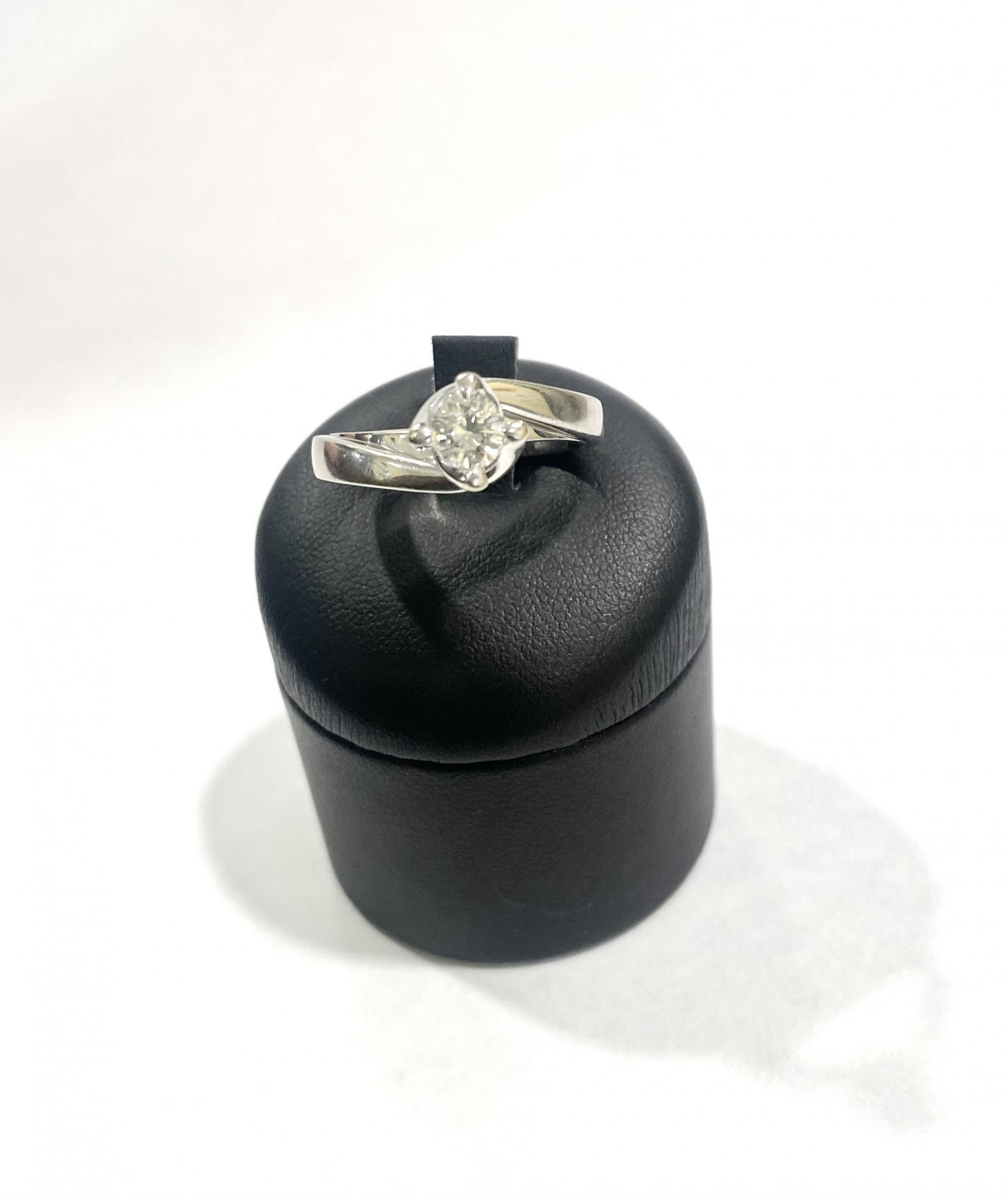KE08 - SOLITARIO - ANELLO IN ORO BIANCO 18K CON DIAMANTE CT 0,50 CASTONE A 4 GRIFFE