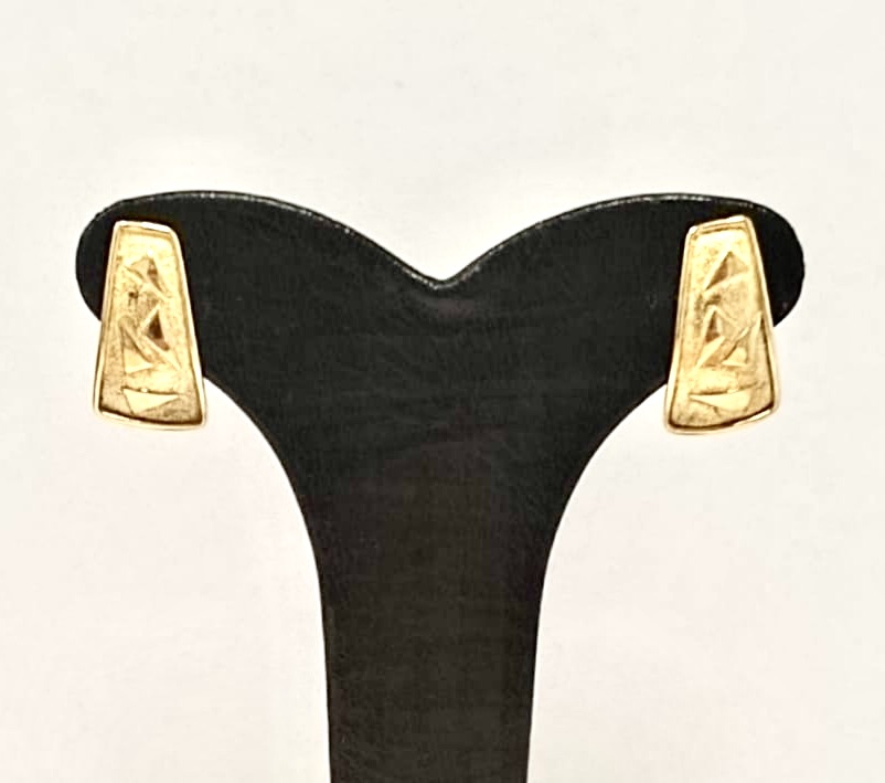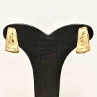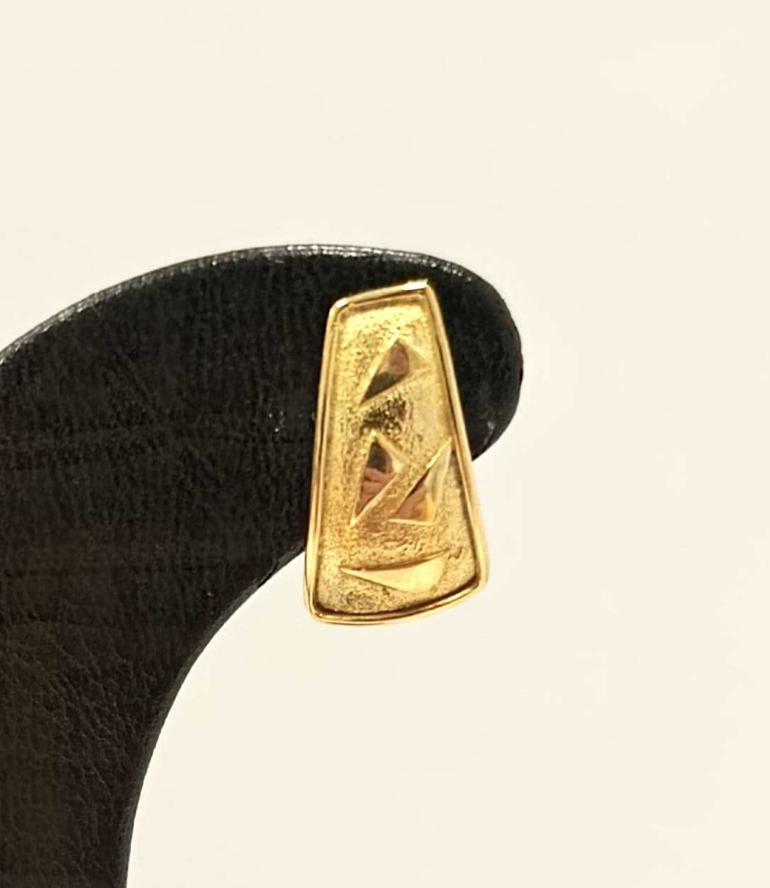 KE03 - ORECCHINI PIASTRA ARTIGIANALE IN ORO GIALLO 18K DESIGN MODERNISTA GEOMETRICO CON TECNICA DELLA FUSIONE A CERA PERSA, FINITURA A SBALZO LUCIDA E PUNTINATA